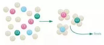 ▲(消化分解后的麦麸与体内油脂结合,随便便排除体外)