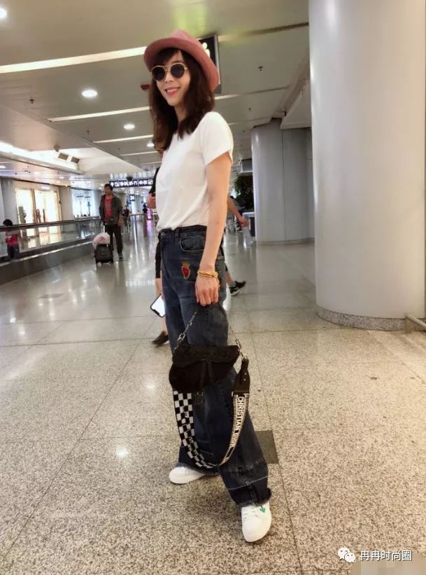 我们一起来看看张静初的这身装扮,只见张静初身穿一件白色上衣,搭配一条深蓝色牛仔喇叭裤,脚踏一双白色板鞋,手提一个黑色链条包,配上头戴粉紫色的帽子,这身装扮的张静初看起来很是简约,但张静初这身简单造型的呈现同时也趋势着张静初身上极具的少女气息。