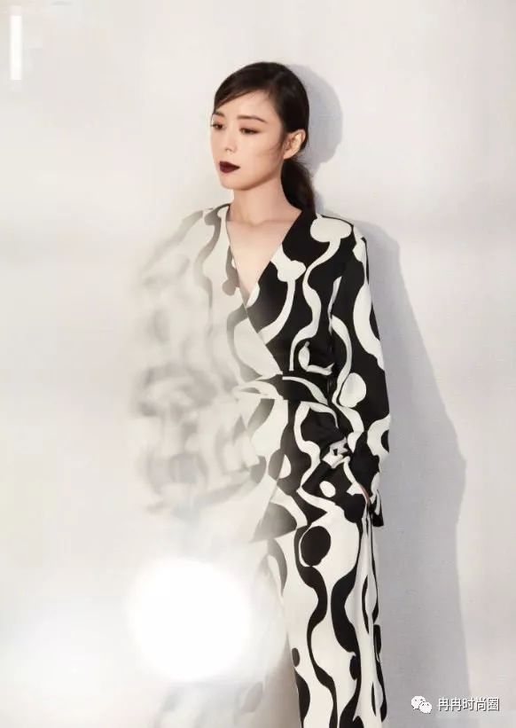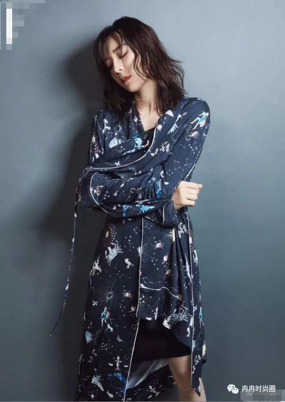 接下来,我们一起来看看张静初的这身装扮,只见张静初身穿一袭深蓝色印花睡衣款外套,放着一头微微凌乱的发型,这身装扮的张静初看起来很是稳重,有着一股女性成熟美的气息。整体暗色系的装扮,将张静初显得女人味十足,搭配上鲜艳的枫叶红唇色,尽显女性般的小性感。