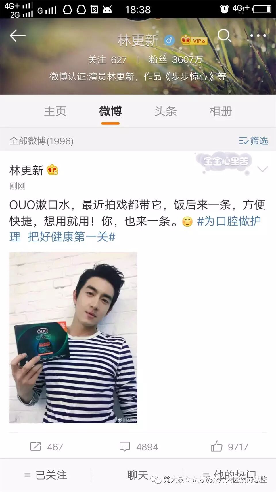 林更新也说最近拍戏都带着OUO漱口水哟~