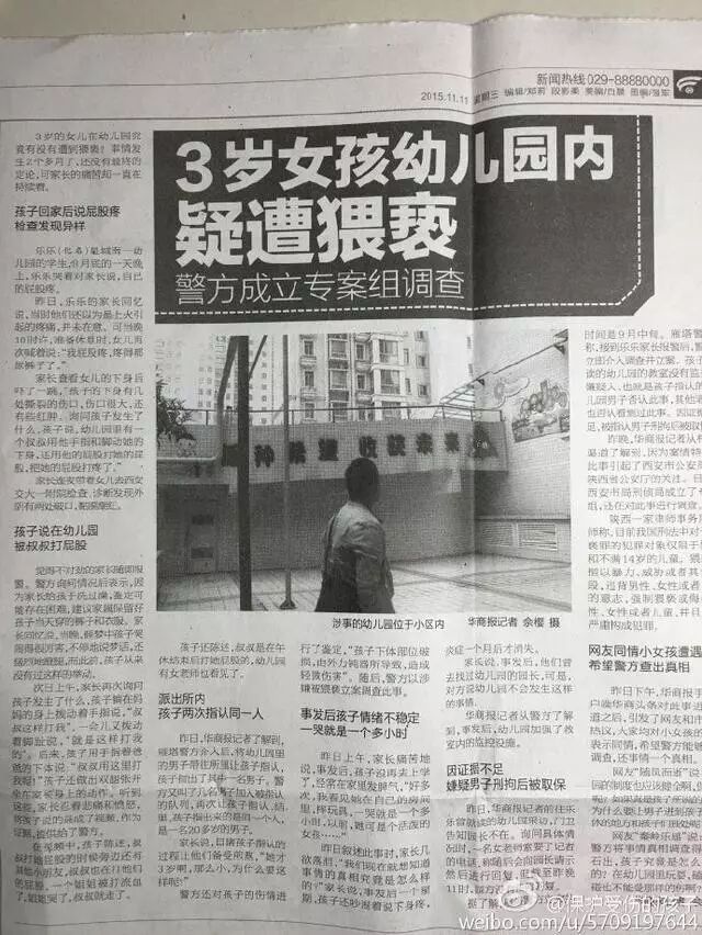 西安市一家幼儿园内3岁幼女遭遇性侵