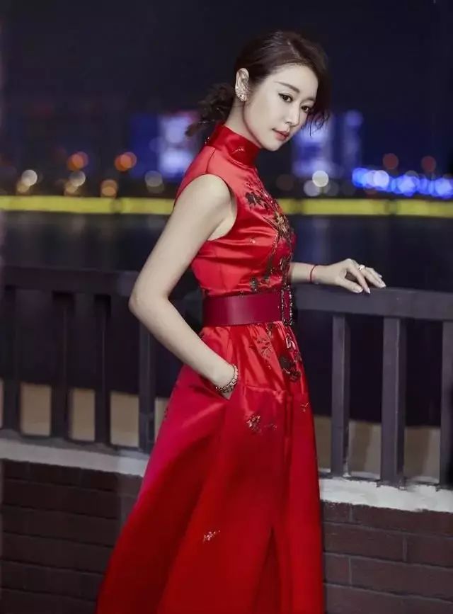 林心如身穿红色中式礼服长裙,这款极具古典传统的连衣裙,惊艳了许多人,从材质到刺绣,把贵气的中国元素完美的体现到了。修饰脸部线条及脖颈的“唐装领”,用红色的宽腰带束住腰部,提升腰线,完美的展现了林心如纤细的身材。一头偏分的麻花辫,平衡了这条刺绣连衣裙的古典气息与现代感,林心如倾情演绎的不只是古风古韵。佩戴珠宝首饰的林心如雍容华美,一举一动、一颦一笑都尽显女士的优雅成熟美。古典的礼服长裙无论是什么款式和风格,在林心如的演绎下,都洋溢着中国的风格,十分耀眼!