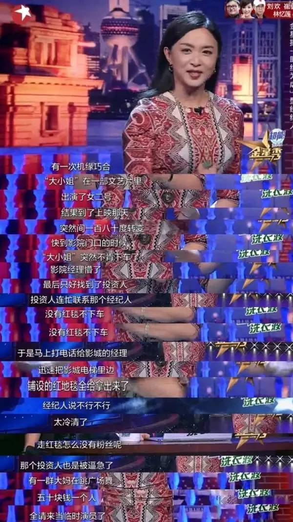 至于有一位代号为“大小姐”的明星因为电影首映没有红毯、没有粉丝拒绝下车,最后电影投资人只好把影城电梯里的红地毯拿出来,并召集广场舞大妈伪装粉丝才顺利过关,