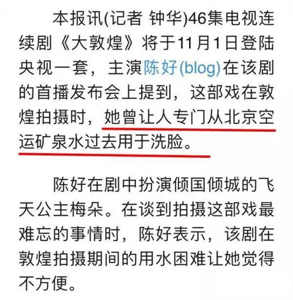 还有一个玉女明星,在西北缺水地区拍戏,嫌当地水质不好,要用矿泉水洗澡,然后又说这个矿泉水洗澡了,她要喝国外大牌矿泉水,逼得导演给她空运了几箱。