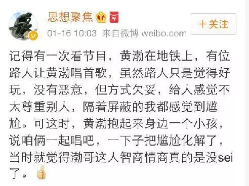 看看黄渤这双商直接秒杀多少小鲜肉啊,你看他在各种场合谈吐大方、恰到好处、侃侃而谈、幽默风趣、随机应变的时候,可曾想,这只是体现他万千智慧的一个小小场景,工作生活中还不知道有多少这样的机智呢,人红不靠脸靠情商,黄渤简直就是一部教人为人处世的典范教材呀!