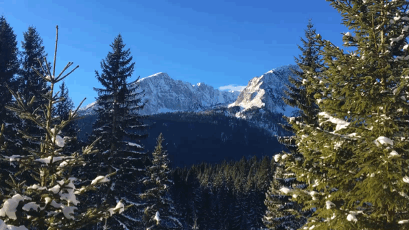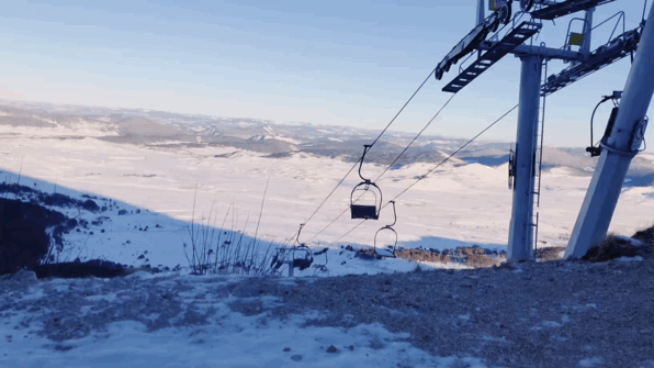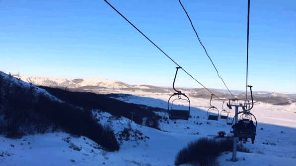 刚下缆车的那瞬间实在太冷了,双脚快被冻得没有了知觉,我和婷婷立马溜进工作人员的小木屋里,在暖气旁取取暖。等缓过来后,我俩走出门外,来到一片空地,欣赏眼前壮阔的山景。