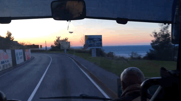 一路上我并没有睡着,大巴车一点点离开科托尔。在沿海的盘旋公路上,太阳从海平面慢慢升起,从淡粉色,慢慢深红,最后到一整片的金黄色。我不敢大声叫唤,但又很想叫醒身边的婷婷,希望她也能看见眼前这番美景。
