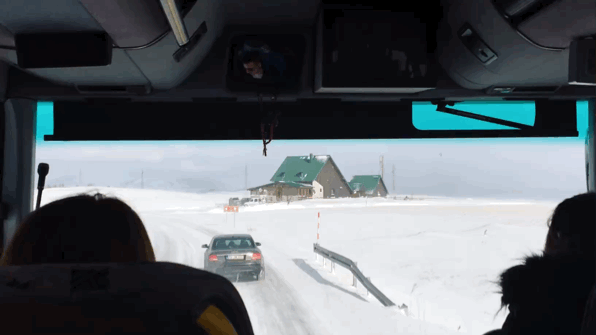 我们与房东的母亲道别,拥抱过后,再次驶出森林,离开了扎布利亚克。小木屋的身影慢慢离我们远去,雪地里只留下了长长的车轮印记,这大概就是山回路转不见君,雪上空留车行处了吧。