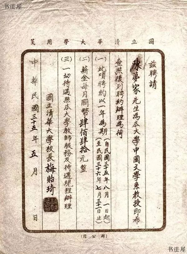 ▲ 梅贻琦给陈梦家签发的聘函