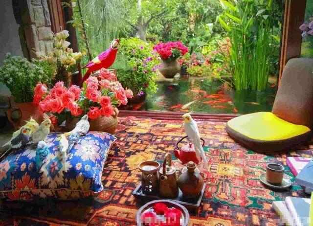 ▲花团锦簇的花园,每一只鸟都有自己的名字,都喜欢围着她