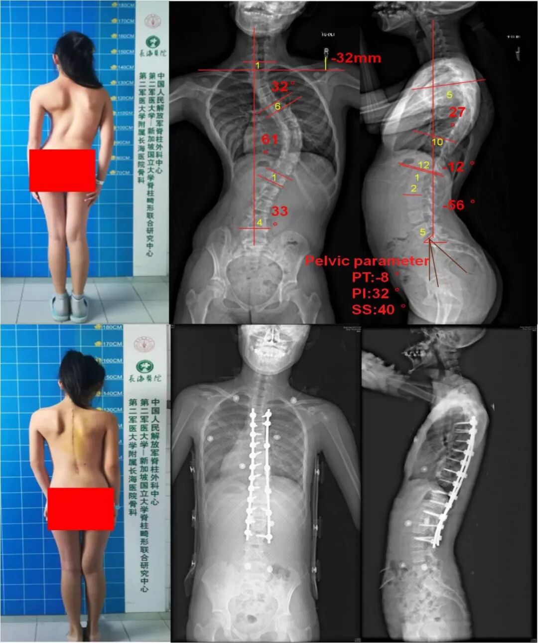李明教授长年从事脊柱外科临床工作,在颈椎病、腰椎间盘突出症、腰椎管狭窄症、腰椎滑脱症及脊柱骨折、肿瘤、结核等方面积累了丰富经验,尤其对脊柱侧后凸畸形矫治有很深的造诣。长海医院对两位远道而来的求医同胞做了全面细致的术前检查,并配备了外语流利的医护人员,依托医院综合保障实力,以骨科为主体联合心内科、呼吸内科、心胸外科、重症医学科、麻醉学部等多学科会诊,多次组织全科病例讨论制定详细手术方案,经充分术前准备后两位同胞均于2018年6月5日在骨科医疗团队李明教授、毛宁方副教授、陈凯、赵颖川主治医师等和麻醉学部邓小明教授、熊源长教授、马宇副教授等多位专家密切配合下顺利完成手术,术中使用到O臂导航辅助置钉等国际上最先进的设施设备和仪器,两位同胞术后病情平稳,手术效果满意,均为祖国现已发达和国际接轨的医疗技术所折服。