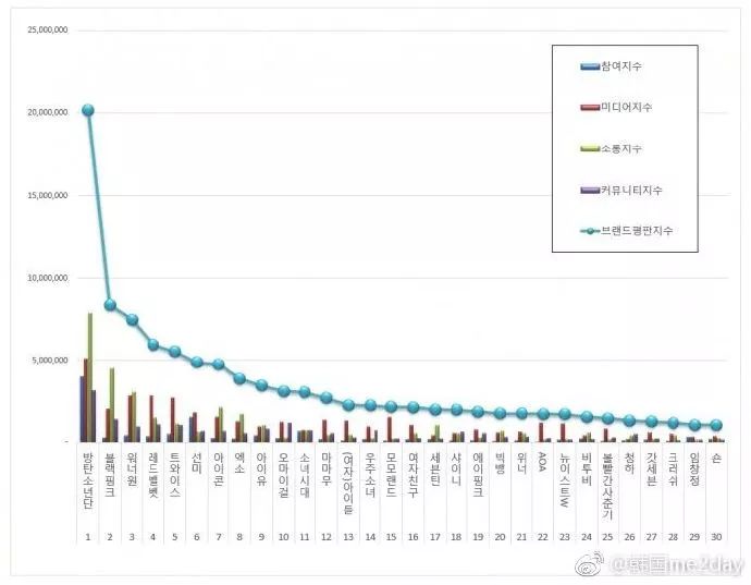 2-5位依次为BLACKPINK,WANNA ONE,RedVelvet,TWICE。