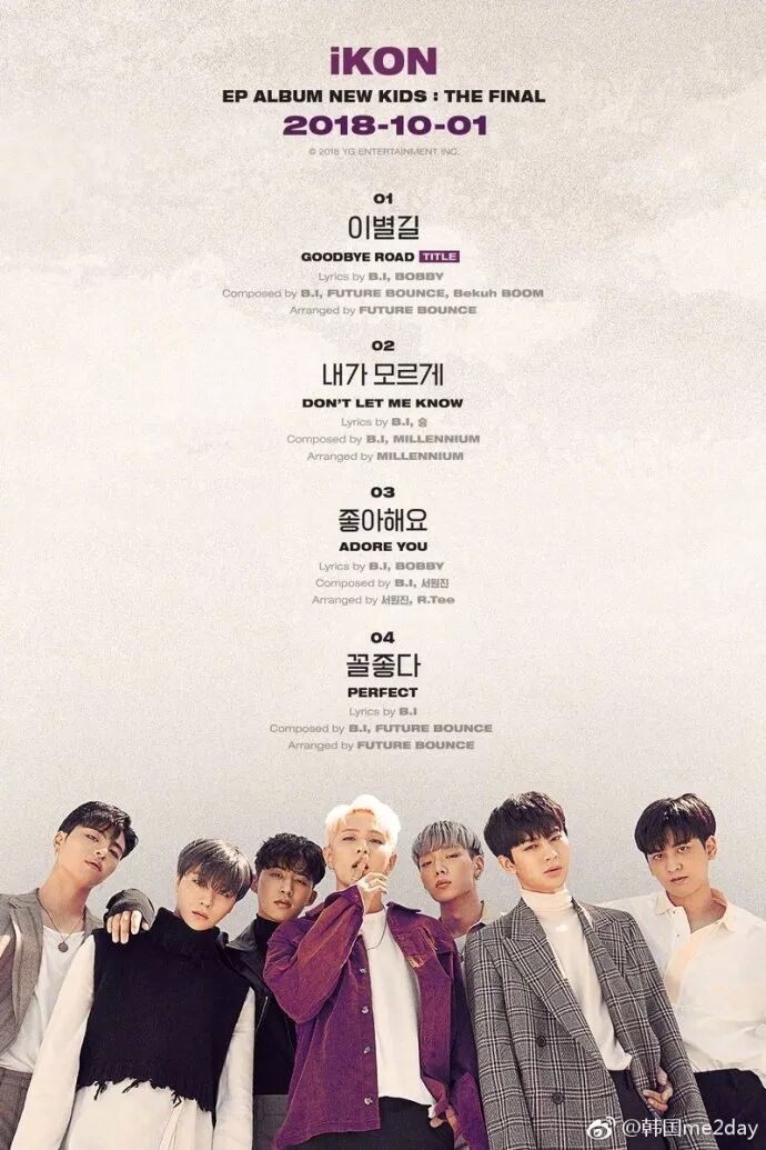 YG官方SNS发布iKON新专《NEW KIDS : THE FINAL》的歌单
