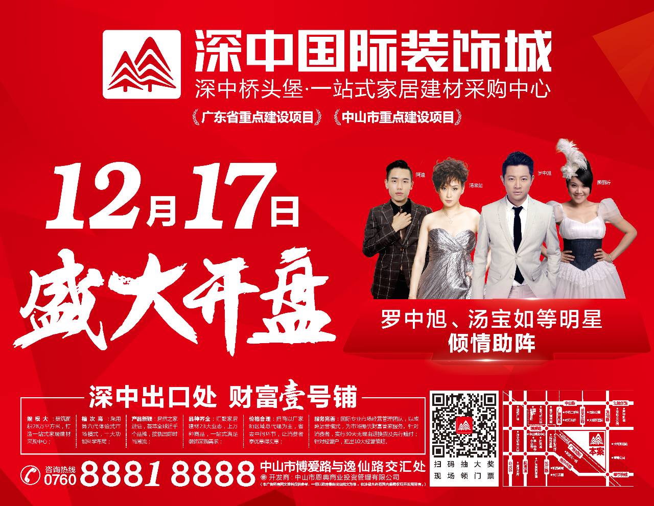 12月17日,汤宝如、罗中旭等明星亲临深中国际装饰城,现场演绎经典名曲,带您重温那些怀旧记忆。汤宝如、罗中旭等明星演唱会门票现正火热派送中,扫描下方的二维码或亲临项目现场领取。