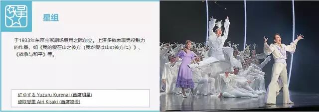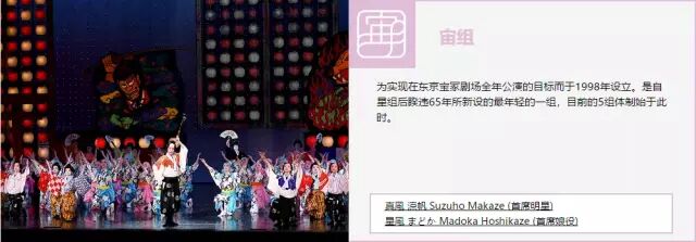每组有专属自己的徽章和擅长特色剧目,也诞生出了八千草薫、真矢美纪、天海祐希、大地真央、黑木瞳等无数优秀艺人。