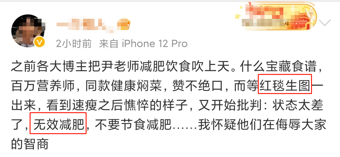 人们对尹正减肥食谱的态度开始出现反转,是从微博之夜的红毯图开始的。