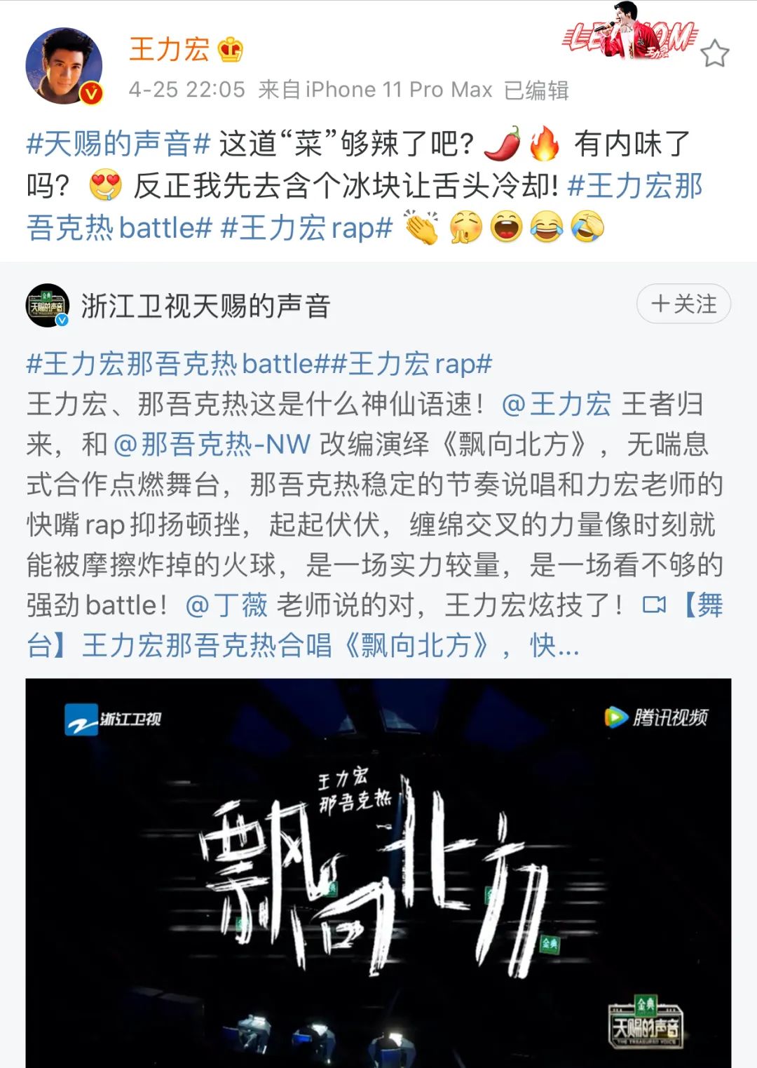 从开播至今,华语乐坛辉煌时期的四小天王之一王力宏,名字在热搜榜上频繁出现——#王力宏Rap##王力宏四个八度音域##王力宏那吾克热battle##王力宏陈楚生无问西东#。