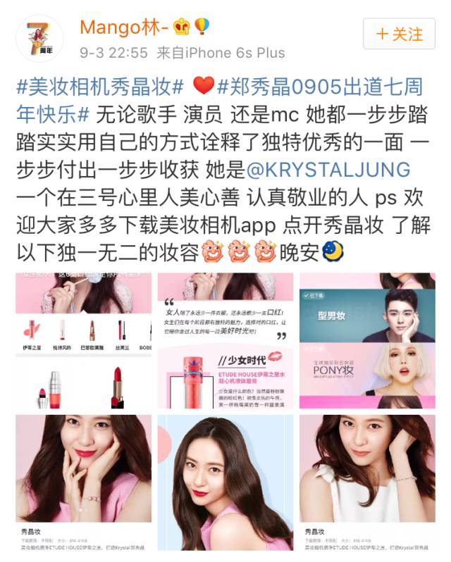 美妆相机祝郑秀晶0905出道七周年快乐! 美妆相机 日韩女星 2016-09-05 21:58:02 301 创作不易,用心坚持,欢迎请BaGua喝几杯爱心咖啡!打赏并支持本文 打赏并删除本文 点击上方「美妆相机」关注你的专属美妆师!晶饭们只用了20小时就让#美妆相机秀晶妆#话题量突破905万美老师也遵守了约定用美妆相机app首页大banner为秀晶应援▼▼▼不管作为歌手、演员、还是MC秀晶都以自己的方式闪耀着就和这位晶饭说的一样秀晶还有非常多优秀的地方等待你去发现打开美妆相机寻找美妆相机 x 伊蒂之屋联合推出的秀晶妆还有更多秀晶的身影等待你发现!截图加话题#美妆相机秀晶妆#分享到微博秀晶代言的伊蒂之屋新款唇膏、粉丝站的周边礼包各种好礼等你来拿!更重要的是还有美妆相机和晶饭9005万的开屏应援约定需要每个晶饭共同的努力!PS.美妆相机首页的应援banner是今日限量快快截图分享到微博认证吧!点击“阅读原文”下载美妆相机晶饭拿好不谢! 创作不易,用心坚持,欢迎请BaGua喝几杯爱心咖啡!打赏并支持本文 打赏并删除本文 感谢您的支持鼓励,我会继续努力的!文章地址:用户邮箱:打赏金额:USDT 请输入数字点击”去打赏“,即可进行打赏支持本文章哦 郑秀晶 About the Author 美妆相机 功能介绍:跟我学美妆,小白变大神! Related Posts 美妆相机祝郑秀晶0905出道七周年快乐! 2016-09-05 21:58:02 发表评论