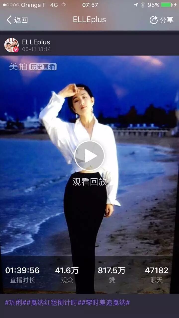 其中巴黎欧莱雅与国际顶级时尚杂志ELLE合作的直播,创造了新的观众数美拍纪录。