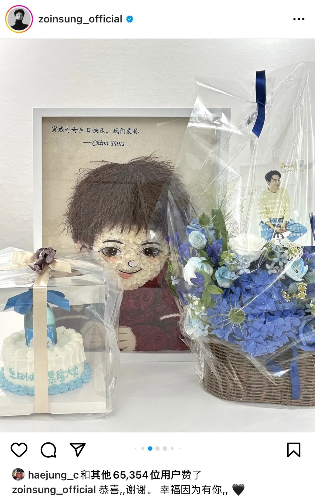 他还收到了来自中国粉丝的祝福,粉丝们暖心制作了精美的礼物,并附上“寅成哥哥生日快乐,我们爱你”的留言,用心程度up!他也在ins发出留念照片,并表达感谢⬇️