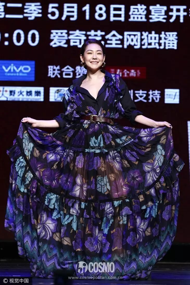 最近,小S也演绎了一条碎花长裙,oversize的衬衫版型对于“小个子星人”来说不太好驾驭,但是小S用一条腰带化解了身高的尴尬。但和林志玲的长裙造型比起来还是略微拖沓了一点。