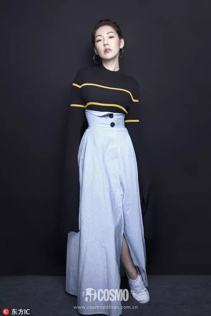 小S最近也爱上了毛线一字领上衣,只不过她更偏好深色系,而且和志玲姐姐的女人路线截然相反,她选择的是用裤装搭配。紧身牛仔裤的搭配虽然少了很多软妹气息,但是却更加实用,值得日常借鉴。再加上超大号HOOP耳环的装点,欧美范儿十足。