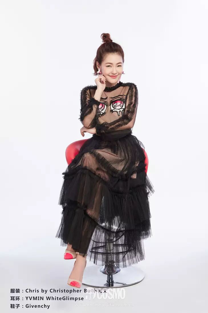 小S则是走俏皮路线,选择一条Chris By Christopher Bu的黑色透视连衣裙,加以粉色异形耳环、拼色高跟鞋点缀,活力四射。