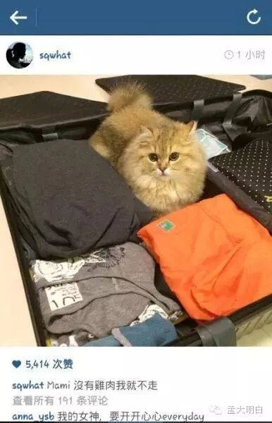 然后舒淇又晒了一张猫站在行李箱的照片,行李箱里装的明显是男人衣服。