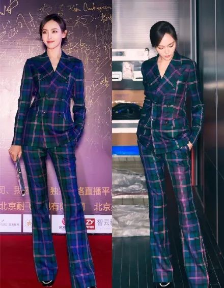 格子西装喇叭裤也掩盖不了唐嫣的逆天长腿