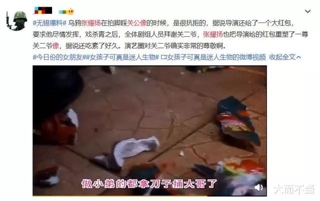 因为张耀扬从内心里对关二爷是十分敬畏的,砸关老爷像这种大逆不道的事怎么能做呢?即使是拍电影那也不行!
