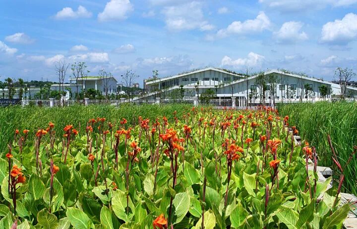 阳光下,鸢尾花、美人蕉、菖蒲等连绵成片,一般人绝对想不到这是个城市污水处理厂