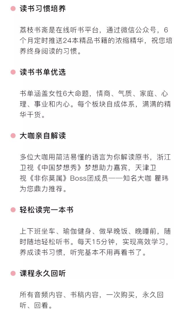 从今天起,如果你也想通过坚持读书,做一个高情商,会做事,有底气的女人,那就加入荔枝书斋180天读书计划,提升认知,打造升级版的自己!