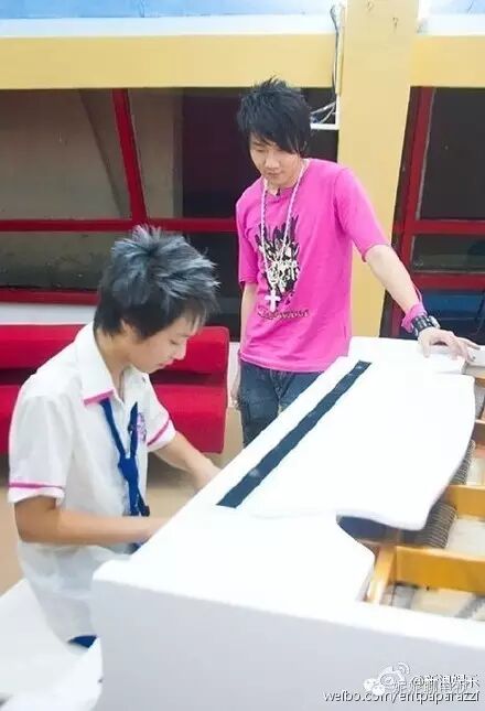 追星当如张艺兴啊,向着偶像的方向努力,凭着自己的努力和实力站在偶像旁边,被偶像拍着肩膀介绍,和行走的CD四手联弹、一起弹唱,真替你感到幸福: