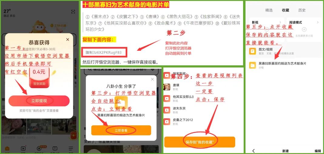 然后打开悟空浏览器(一款阅读给钱的浏览器),一键保存!!然后直接观看。