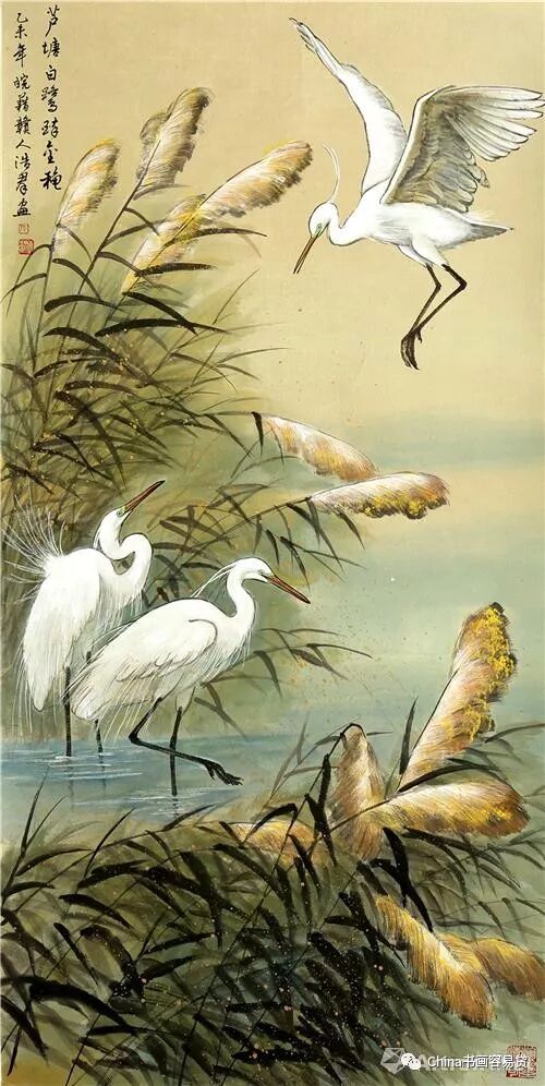 《芦塘白鹭醉金秋》138×68cm 2016年