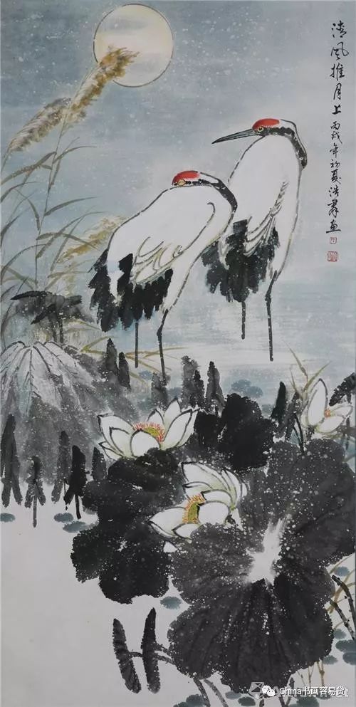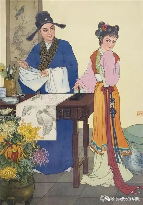 无独有偶,浩群先生人物画创作中的形象总是那么准确、秀美、动人魂魄!他的古代美女系列、戏剧人物系列、现代年画系列,总是向人们展示出蒸蒸向上的正能量,举手投足、一颦一笑间传递着人来的真善美。他也总是关注着普通群众耳熟能详的神话故事和民间传统题材,将如梦如幻、为人们津津乐道、无限向往的生活美景、良好愿望艺术地呈现给芸芸众生,从而引起群众的共鸣和喜闻乐见。如《李清照》、《孔雀东南飞》、《七仙女送子》、《唐伯虎点秋香》等,达到了雅俗共赏的艺术意境。浩群先生艺术上的全面才华还展现在他大量的花鸟创作上。众所周知,我国花鸟画的产生和发展,几乎与彩陶同时,已有数千年的历史,到宋以降达到了高峰;“梅兰竹菊”的传统文人画也延续了千年之久。