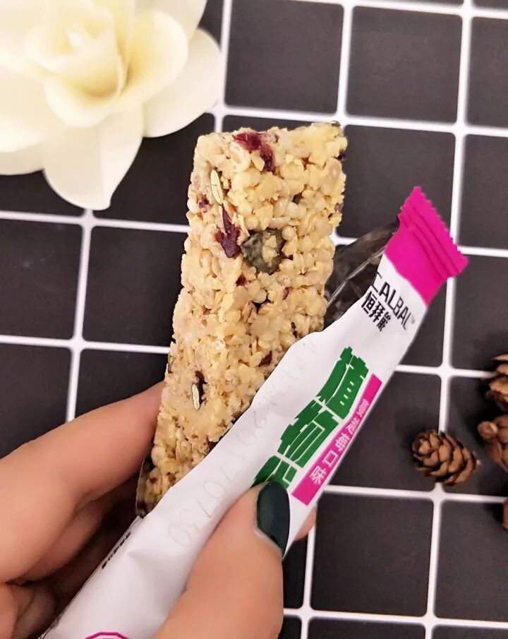 但是现在有了这款代餐棒就不用担心了,每一条代餐棒都含有藜麦、蔓越莓等10种以上的健康谷物,不但有超强的饱腹感,还能够补充身体一天所需要的多种营养物质,而且打开包装就会发现,里面真的是货真价实的营养谷物哦。