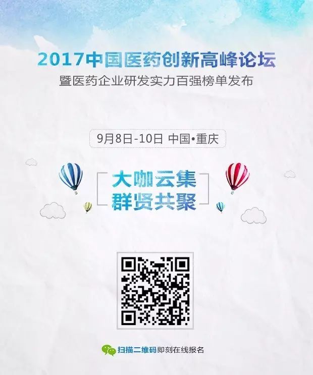 2017年9月08日-10日——重庆——“2017中国医药创新高峰论坛·暨医药企业研发实力百强榜发布”