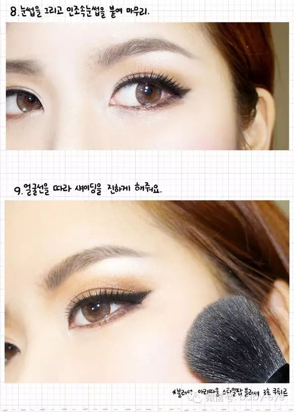 先来看一看眼妆画好后的效果,是不是和李孝利在舞台上上的妆容一模一样,而且微闭的眼睛显得诱惑勾魂。