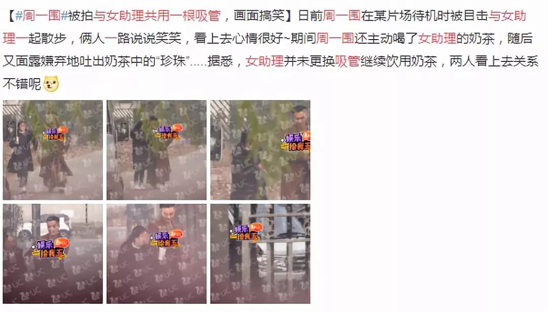 像上周,周一围就因为和助手同饮一杯奶茶闹得沸沸扬扬~