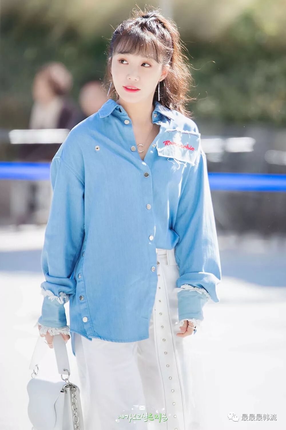 而站在她们中间的郑恩地……不管是衣服还是配饰,被对比的非常不起眼。