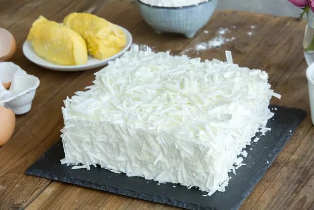浓郁的榴莲果肉夹心,唯美的巧克力飘雪,缠绵的松软蛋糕胚底,让喜爱甜品的你,迷失在幸福的乐园里!