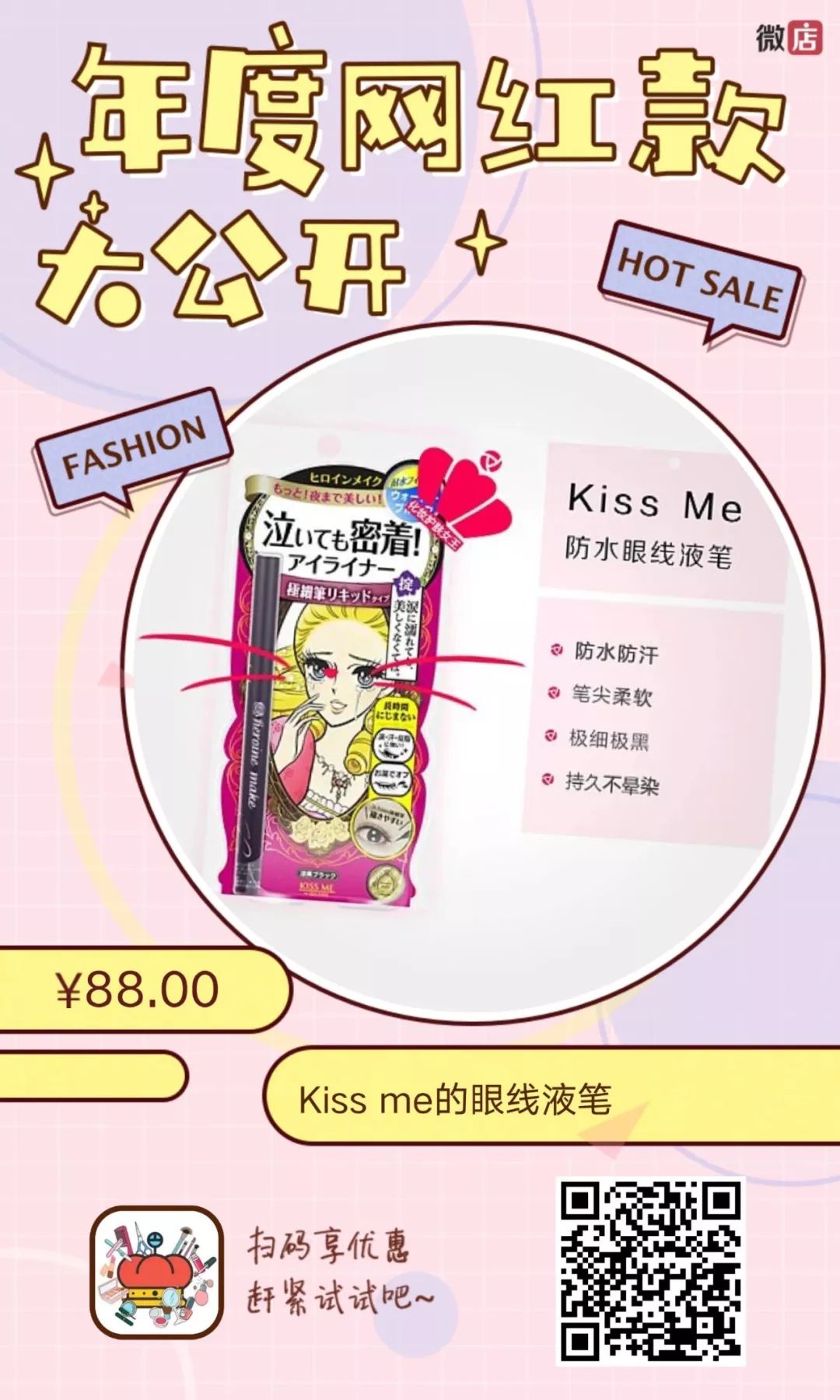 Kiss me的眼线液笔大家一定都听说过,笔头超细也好控制,上笔瞬间就干且防水防汗,不晕染真的很重要,持久度也很棒。