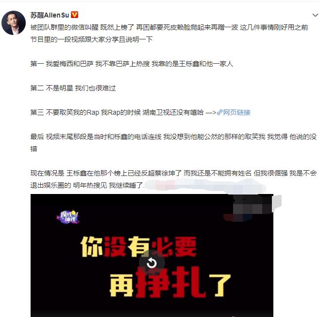 视频最后王栎鑫说的那句是:我觉得你可以退了,以你现在不红的程度,你没有必要再挣扎了。