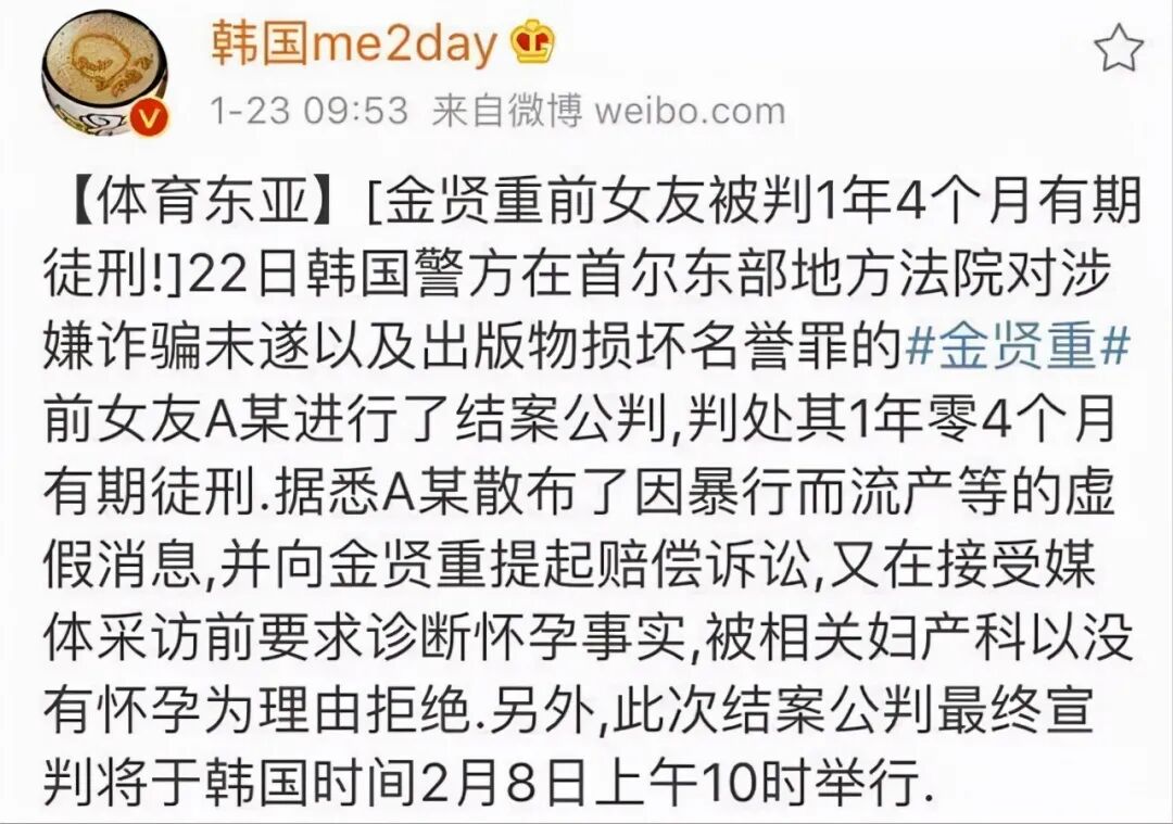 金贤重在舆论的压力之下,选择了入伍躲避风波,结果前女友又爆料称自己曾经被金贤重家暴而流产。