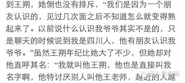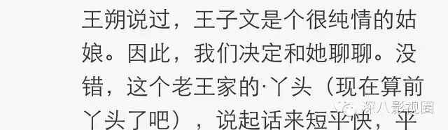 不过深八君要为王子文澄清一下,她确实没有做王朔的小三。她认识王朔时,他早就离婚不知多少年了。他曾经在采访中承认后悔离婚,还在书里写过离开前妻和女儿那一天的情景。