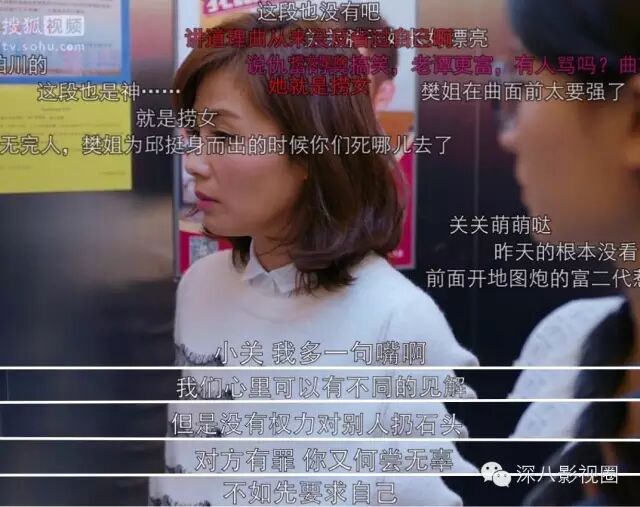 有八卦群众因为曲筱绡而抨击欢乐颂三观不正,深八君倒不认同。请看听完曲那段话后,刘涛扮演的金领邻居是这么说的:”我们心里可以有不同的见解,但无权对别人扔石头。别人有罪,你有何尝无辜“。这才是剧中表达的三观啊。