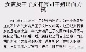 王子文因为合约问题跟周星驰擦身而过的第二年,发生了文艺圈大腕王朔冲冠一怒为红颜,帮这个小透明演员打解约官司的轰动事件。王朔的说法,是自己和王子文爷爷是朋友,让记者别老往八卦方面想。