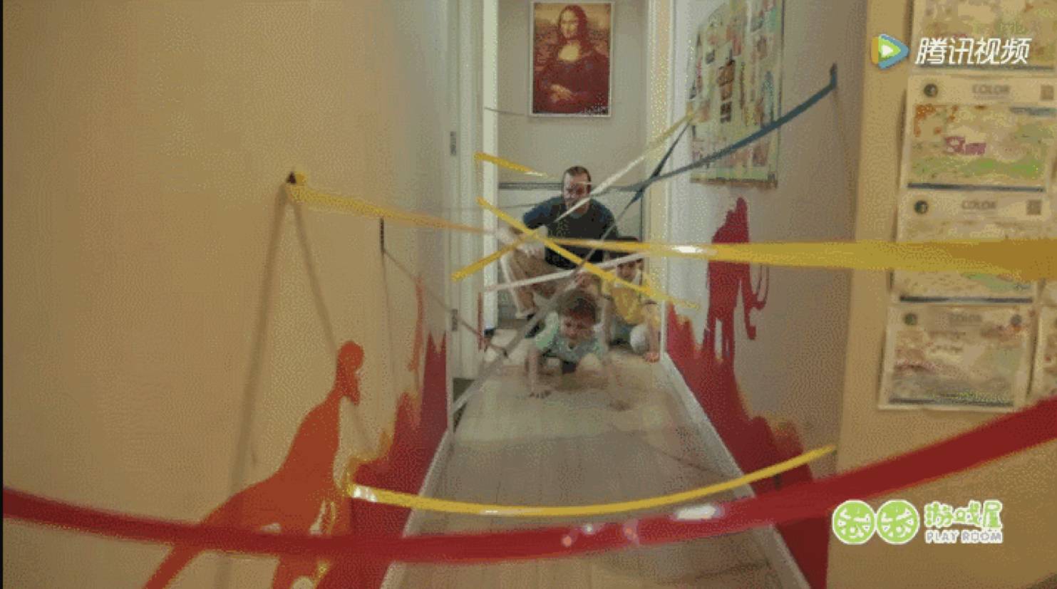 好了,开始挑战吧!家长可以为孩子设定一个场景,比如在终点有宝物等待着孩子,或者要穿越一个充满危机的战线!告诉孩子在穿越的过程中不能碰到胶带,否则就算触发了机关哦!