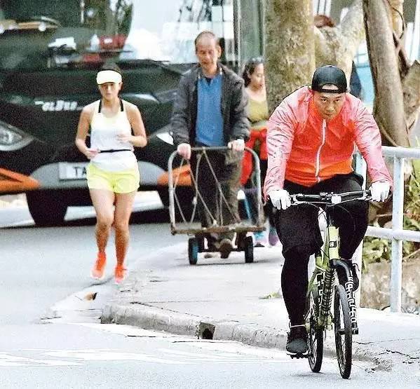但是徐濠萦喜欢啊,他又怕老婆一个人跑步太孤单,于是经常陪着她跑,实在跑不动的时候,就骑着自行车跟着她,或者给她拿衣服。